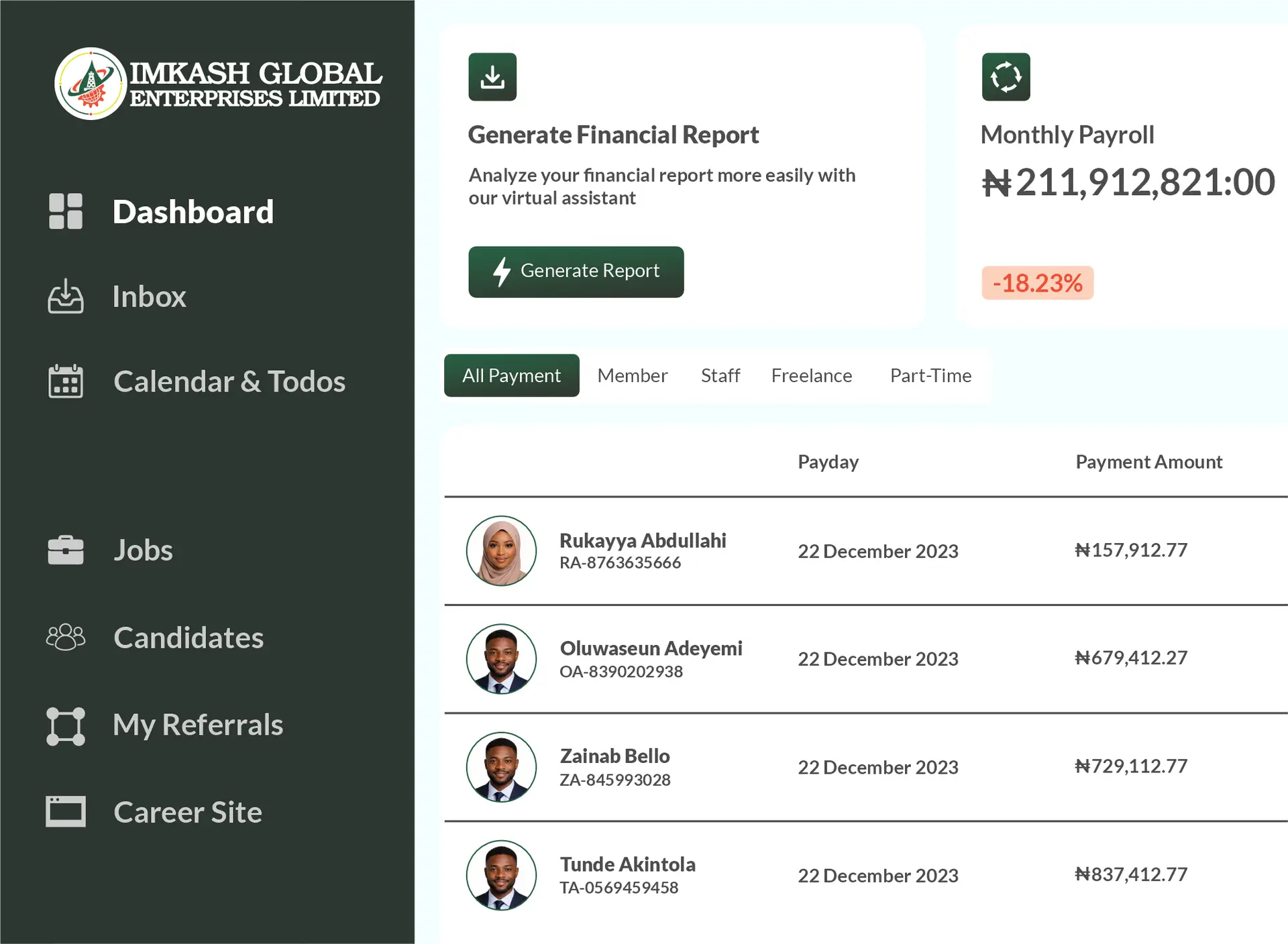IMKASH uses an Applicant Tracking System (ATS) that compares each CV with the job requirements and assigns a match score. Candidates are then ranked, making it easier for Employers to shortlist the best fit faster.